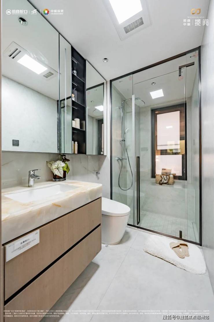 本以为卫生间会是“装修死角”?不不不!「招商中旅·揽阅」想打造奢华质感居所的决心从不是说说而已。项目主卫洗浴区/坐便区/盥洗区实现分段式干湿分离,起居动线更为合理有序。